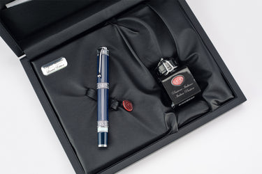 Trim elements are engraved with a leaf motif, cap finial features a portrait engraving of Dante Alighieri. Proudly made in Italy, the fountain pen comes with "Italy" engraved on the edge of the cap finial and the "Italian Tricolore" flag in enamel - located on the barrel ring.