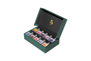 The Flower collection features 10 individual ink colors offered in a 30 ml glass bottle ink set - the entire collection features a flower theme color palette : Aster, Bougainvillea, Burgundy Rose, Carnation, Cornflower, Gerbera, Iris, Marigold, Pansy, and Tulip.