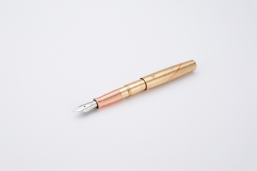 The fountain pen is small, portable, and handy, placing emphasis on the material from which it is made. It showcases a unique range of materials that, up until now, have not been offered in the Gravitas lineup. Mokume-gane is a Japanese technique of fusing several layers of metals forming a sandwich of alloys with a distinctive wood like grain visual pattern. In the case of the Dinkey the two metals fused are brass and copper, making up for the most impactful options of the entire line up.