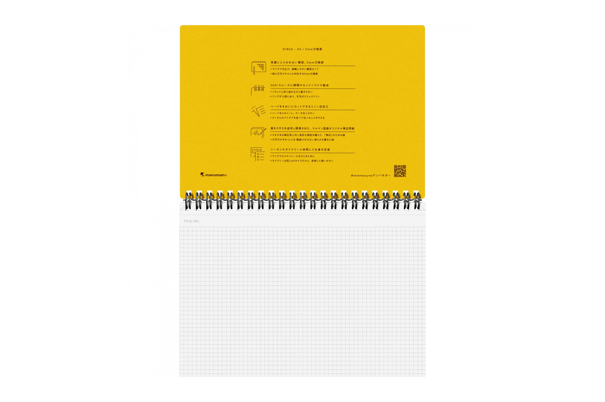 Maruman - Mnemosyne 182 Black A5 Notebook | Grid 140 pages