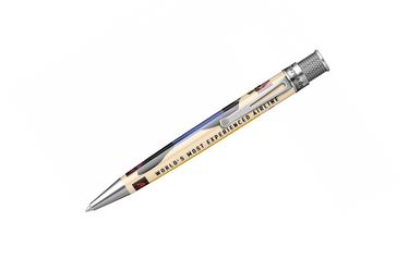 Experience the charm of the jumbo jet era with the Retro 51 Tornado Pan Am Roller. Inspired by Pan American World Airways® and its iconic wide-body aircraft, this pen blends advanced design with historical detail. Each pen is unique with the Pan Am logo on the finial and a serial number on the upper ring.