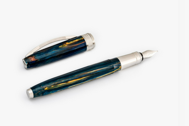Visconti - Van Gogh The Impressionist collection - inspired by the artist's color palette, brush strokes and techniques. Visconti launched this collection in 2008 and 2019 brings a new and revamped fountain pen. Injected natural resin is used to make this pen that has the iconic Visconti's eighteen-faceted design.This pen is a limited edition piece of the 2019 Impressionist Collection. Every pen is presented with a special bottle of ink in the box. The entire trims of the pen are palladium plated.