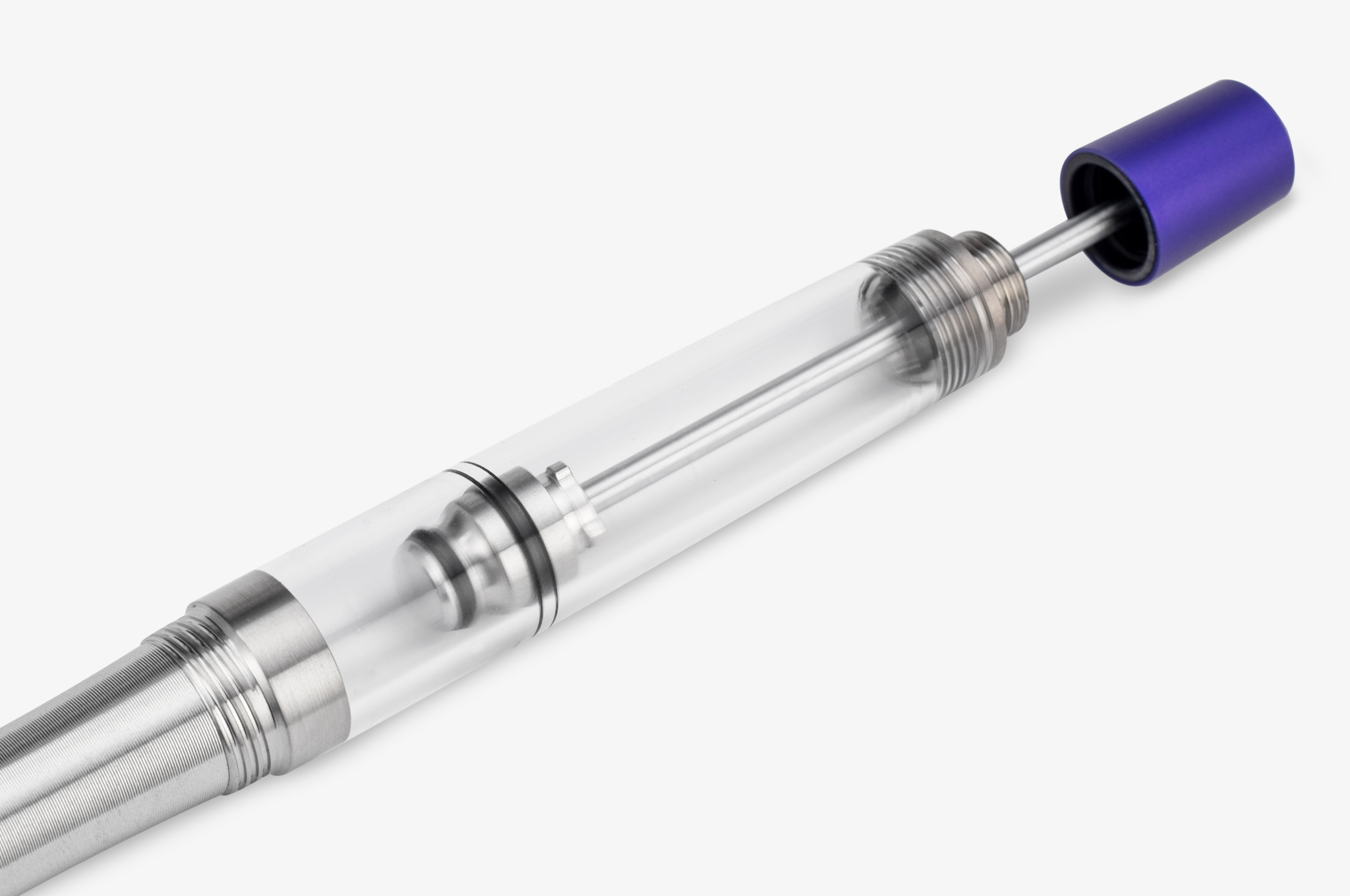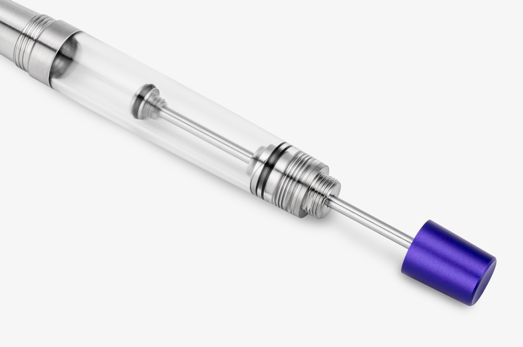 Titan SL derives from the Fifty4T Titan series, with smaller and slimmer proportions, equipped with a Steel #6 (Jowo generic #6 thread pace nib unit compatible). The cap and end knob are made in 6065-T6 aluminium for strength without excess weight - anodised with now a Flush-mounted clip via a precision dovetail joint, set at exactly 21°, the filing system is made from a combination of 304 stainless steel for long-term durability and Titanium chosen for wear resistance, now the TFS (Titan filing system) features a quad-ring (square oring with 2 contact points) made of PEEK HPV for exceptionally smooth mechanical operation, clear barrel is made in machined optical grade acrylic