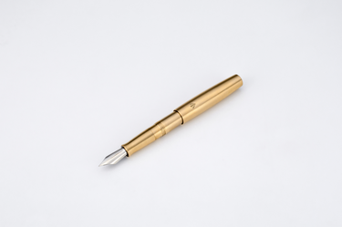 The fountain pen is small, portable, and handy, placing emphasis on the material from which it is made. It showcases a unique range of materials that, up until now, have not been offered in the Gravitas lineup. The Aluminium-Bronze alloy used for the Dinkey is a special alloy highly ductile, highly termo conductive used primarily energy equipment, aeronautica and nautical industries for valves, high strength bushings, gears, cams, propeller blades and shafts - its color leans more to gold than the Cupronickel which steals towards silver.