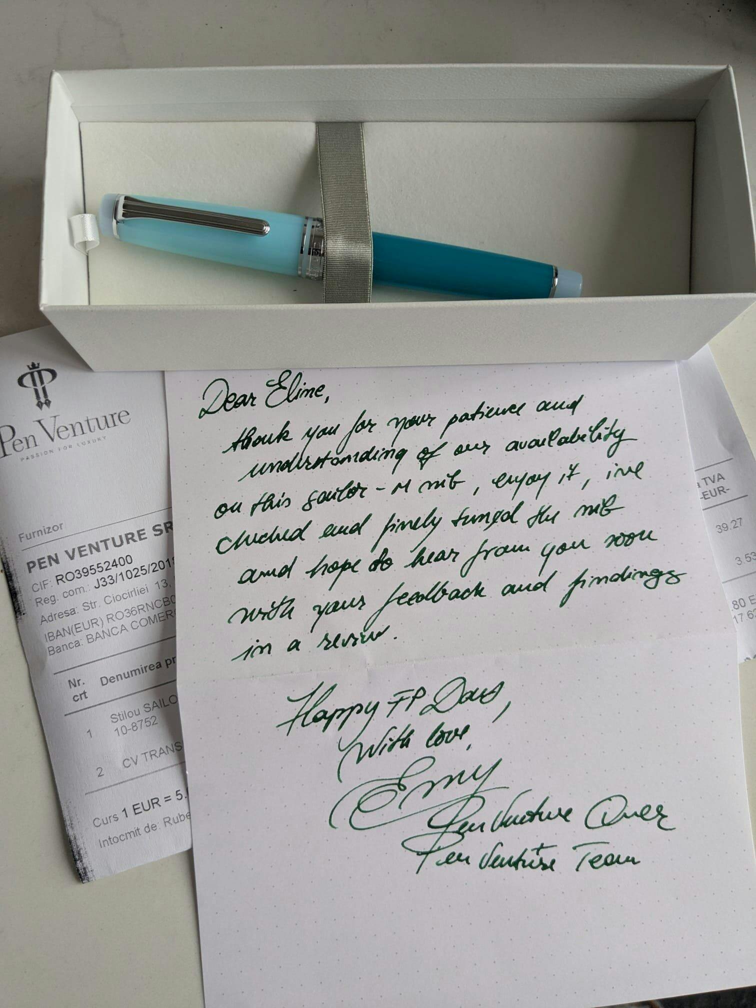 "With each product sold at Pen Venture, our commitment to excellence shines through. We take pride in providing a professional and personalized touch at every stage of your purchase. Every fountain pen undergoes a preestablished process – meticulously inspected, its nib delicately dipped in ink, and rigorously tested. If any minor adjustments are required to ensure an exceptional writing experience, rest assured, these are expertly carried out by Emy himself prior to shipping.